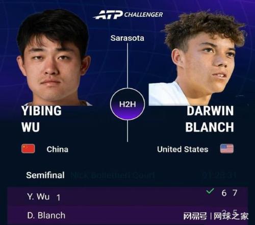 我們首先來(lái)關(guān)注中國(guó)一哥吳易昺。在北京時(shí)間昨晚進(jìn)行的ATP挑戰(zhàn)賽薩拉索塔站半決賽中,吳易昺發(fā)揮穩(wěn)定,以6-3 7-5擊敗18歲的美國(guó)小將布蘭奇,順利晉級(jí)決賽。