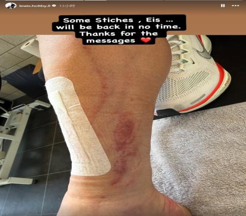 比賽結(jié)束數(shù)小時(shí)后,霍爾特比在Instagram上發(fā)聲,發(fā)布了一張他飽受摧殘的脛骨照片。傷口上貼著一條長(zhǎng)長(zhǎng)的膠布,旁邊還能看到其他多處擦傷。他在照片旁寫(xiě)道:“縫了幾針,上點(diǎn)冰敷。我很快就會(huì)回來(lái),謝謝你們的留言?!?/p>