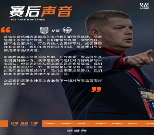 可能我賽前不會(huì)是這樣想的,在我看來,青島海牛是表現(xiàn)更好的一方,我不想說我們是比對(duì)方好的多的一支球隊(duì),但是無論是從場上表現(xiàn)還是賽后數(shù)據(jù),我們還是表現(xiàn)更好的一方。但這就是職業(yè)足球,這場比賽對(duì)我們來說已經(jīng)結(jié)束了,我們必須要繼續(xù)努力,我們比賽中需要大家處理的更簡單一些。之后我們需要全神貫注去準(zhǔn)備下一場對(duì)陣青島西海岸的德比比賽。