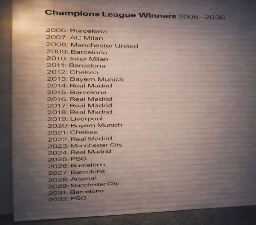 2006年歐冠決賽還沒踢,有人就在網上貼出了未來12年的冠軍名單。當時沒人當真——畢竟預測巴薩、曼聯(lián)、皇馬輪流捧杯,聽起來像球迷喝多了寫的。