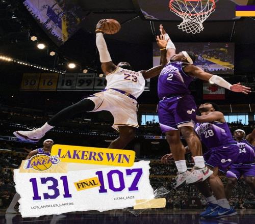 體育播報(bào)4月13日宣 NBA常規(guī)賽,湖人在主場(chǎng)131-107擊敗爵士。