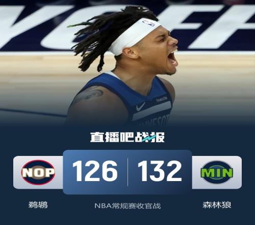 首節(jié)開打后森林狼內(nèi)外結(jié)合開局7-0占優(yōu),霍金斯聯(lián)手費爾斯短暫回應(yīng),森林狼多點開花確立優(yōu)勢,首節(jié)結(jié)束時森林狼領(lǐng)先10分,次節(jié)回來,兩隊拉開架勢繼續(xù)對攻,森林狼總能回應(yīng)牢牢占優(yōu),半場戰(zhàn)罷,森林狼繼續(xù)領(lǐng)先14分。短暫休整后森林狼進攻出現(xiàn)停滯,費爾斯和奎因率隊不斷蠶食分差,三節(jié)結(jié)束后森林狼依然領(lǐng)先7分,末節(jié)決戰(zhàn),鵜鶘沒有放棄繼續(xù)追分,分差一度只剩4分,貝蘭熱連投帶罰守住勝果,最終森林狼132-126力克對手。