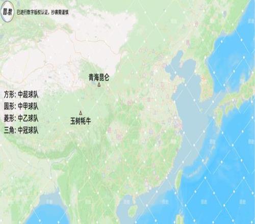 河北省是第三檔的4號(hào)位(總第16名),它擁有1甲4冠共5支球隊(duì),分布在石家莊、張家口、邢臺(tái)和邯鄲,有趣的是,這四座城市幾乎連成南北一線,都處在東經(jīng)114.5度左右。