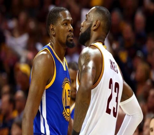時間來到2016-17賽季,詹姆斯杜蘭特在季后賽再度交手,這時的杜蘭特有了MVP,是四屆得分王,但不再身披雷霆球衣,而是轉(zhuǎn)投勇士繼續(xù)追逐總冠軍,詹姆斯則是手握三枚總冠軍戒指,前一個賽季才為家鄉(xiāng)球隊騎士拿到隊史首冠。