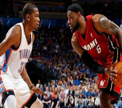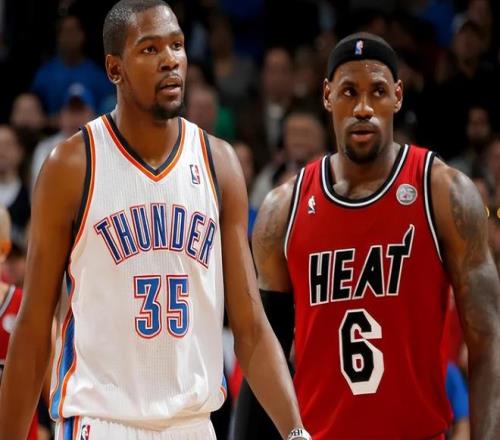 NBA生涯中常年分處東西部的詹姆斯和杜蘭特,要在季后賽里碰上面往往就是只能等到總決賽,2012年這第一次交手,兩人是站在總決賽賽場上,為爭奪奧布萊恩杯做最后的努力。