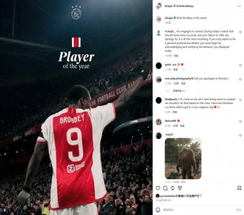 在布羅比社媒的置頂動態(tài)下,過去幾小時內(nèi)出現(xiàn)了多條種族歧視的動態(tài),但也有球迷表示,批評歸批評,不要上升到種族主義。