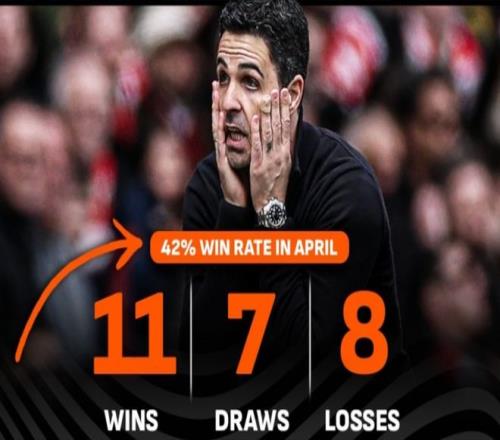反觀阿森納,他們在收官階段的勝率和賽季初是存在不小差距的,尤其是4月份收官階段的表現(xiàn),更是和曼城差距明顯。從數(shù)據(jù)的角度來看,阿爾特塔執(zhí)教阿森納期間,4月份26場英超比賽,僅僅只有11場比賽的勝利,勝率只有42%,甚至還不到一半。平局則是有7場,卻輸?shù)袅?場比賽,在關(guān)鍵時(shí)刻的比賽當(dāng)中連續(xù)丟分,是阿森納在過去幾個(gè)賽季末期連續(xù)崩盤的關(guān)鍵。