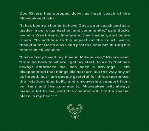 北京時間4月13日,雄鹿官方宣布道格-里弗斯已卸任球隊主教練一職。