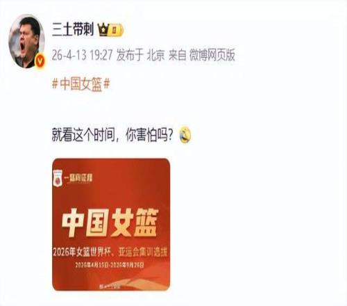 北京時間4月13日消息,中國籃球協(xié)會于4月13日晚上正式公布新一期國家女籃集訓名單,標志著2026年國際籃聯(lián)女籃世界杯與亞運會備戰(zhàn)工作全面啟動。本次集訓從4月15日啟動,持續(xù)至9月26日,歷時近五個月,是近年來周期最長的一次系統(tǒng)性集訓,旨在全面提升球隊技戰(zhàn)術協(xié)同能力、體能儲備與心理韌性,為兩大國際賽事奠定堅實基礎。這一超長集訓周期引發(fā)外界熱議,媒體人“三土帶刺”直言:“就看這個時間,你害怕嗎?”——既是對高強度訓練節(jié)奏的驚嘆,也折射出中國女籃追求卓越的極致態(tài)度。