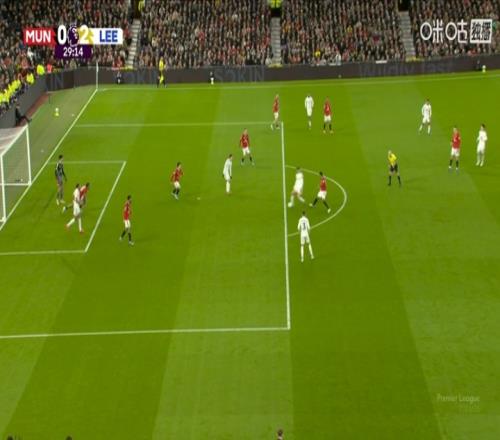 體育播報(bào)04月14日宣 英超第32輪,曼聯(lián)對(duì)陣?yán)澛?lián)。29分鐘,卡塞米羅后場(chǎng)被斷球,奧卡福凌空抽射打在約羅身上變線入網(wǎng),曼聯(lián)0-2落后。