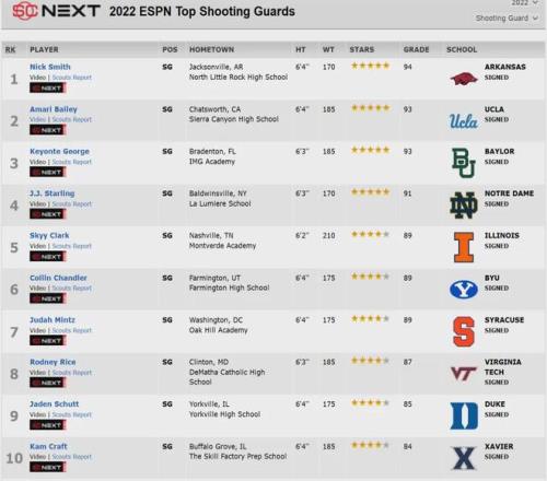 小尼克-史密斯出生于2004年4月18日,身高1米96,臂展2米03。曾是2022屆全美第三高中生,僅次于萊夫利和懷特黑德,在得分后衛(wèi)的位置高居全美第一??上诖髮W遭遇膝蓋重傷,只打了17場比賽,選秀行情一路下滑。