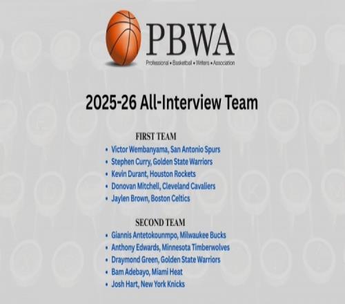 體育播報(bào)4月14日宣 職業(yè)籃球記者協(xié)會(huì)(PBWA)今日公布了2025-26賽季最佳采訪陣容名單。