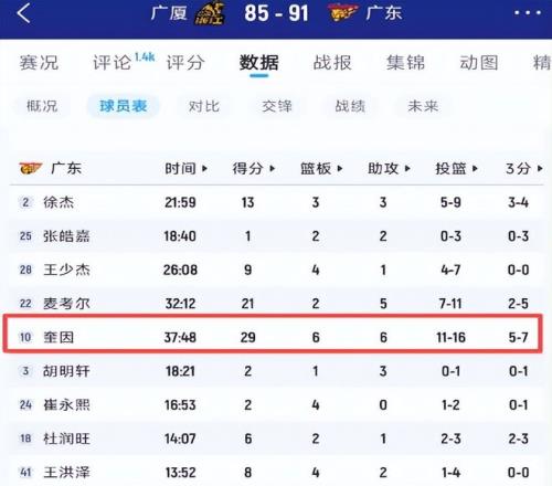 此時(shí)的廣東隊(duì)本就內(nèi)憂外患——薩林杰大腿肌群撕裂長(zhǎng)期缺席,麥考爾腳踝扭傷反復(fù)發(fā)作,張皓嘉膝蓋炎癥未愈,多人帶傷硬撐。胡明軒傷情再升級(jí),無(wú)異于在繃緊的鋼絲上又加一道重壓,后場(chǎng)組織與攻堅(jiān)火力雙雙告急。