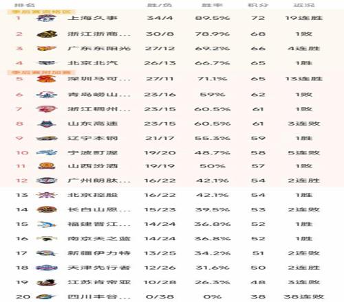CBA最新積分榜