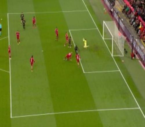 第57分鐘,薩拉赫前場(chǎng)右路挑傳到禁區(qū)左側(cè),凱爾凱茲包抄小角度迎球推射,球稍稍偏出遠(yuǎn)側(cè)立柱!↓