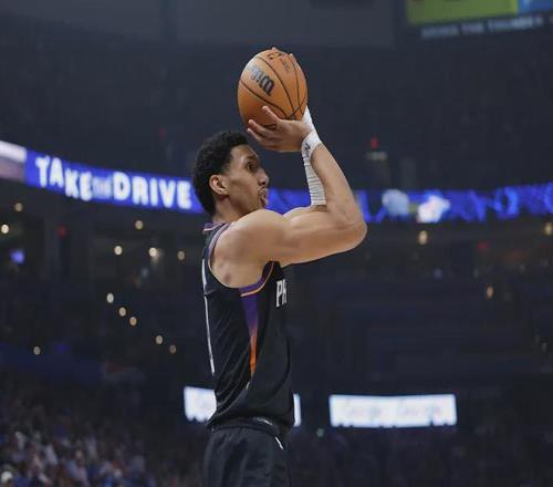 他的16.5分場均得分中,有11.3分來自三分線外,占比高達68.5%。這種極端的得分結(jié)構(gòu)意味著他是太陽進攻體系的"空間錨點"——當他站在三分線外,防守陣型必須外擴,從而為杜蘭特的中距離單打和布克的突破創(chuàng)造操作空間。