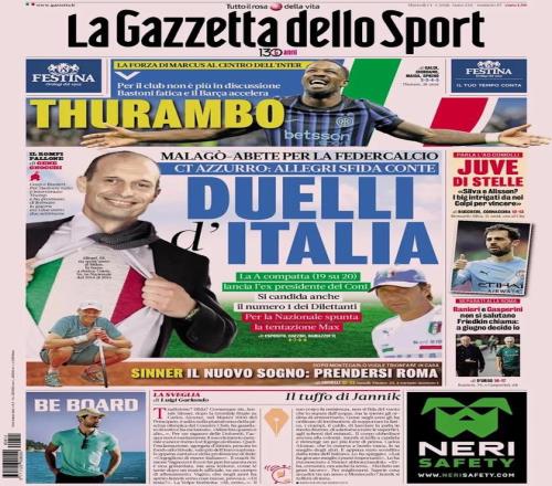 足協(xié)主席選舉的連鎖反應(yīng)直接波及國家隊帥位?!睹滋m體育報》用「Azzurri CT: Allegri battles Conte」定義這場博弈——兩位前尤文、前國米冠軍教頭,風(fēng)格迥異,人脈交錯。