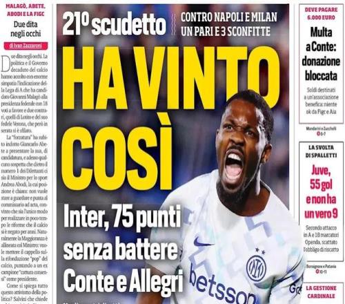 《米蘭體育報》統(tǒng)計:國米本賽季對那不勒斯和AC米蘭的戰(zhàn)績是1平3負(fù),未嘗勝績??椎俚哪遣焕账购筒┞迥醽啠ㄔ奈刺峒埃颂巹h除)——但原文明確指向「Conte or Allegri」,即那不勒斯和AC米蘭。