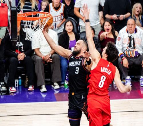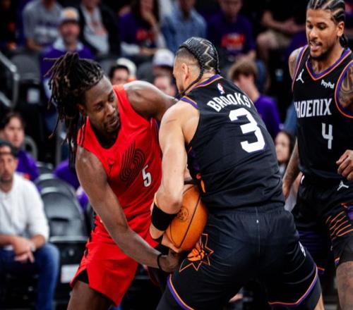 后半段阿夫迪亞和布魯克斯外線對飆,杰倫格林內(nèi)外開花,帶隊(duì)打出小高潮,半場結(jié)束時(shí),太陽追至62-65!進(jìn)入下半場,開拓者連續(xù)罰球,卡馬拉續(xù)上三分。格林和布魯克斯單打,古德溫再中三分球,太陽追分勢頭很猛,打停開拓者。后半段布魯克斯聯(lián)合布克繼續(xù)強(qiáng)攻開拓者內(nèi)線,開拓者全靠阿夫迪亞回應(yīng)。節(jié)末布克上籃,三節(jié)打完,太陽82-83落后。決戰(zhàn)第四節(jié),杰倫格林和布魯克斯又是一波6-0帶隊(duì)反超,開拓者進(jìn)攻完全啞火,布魯克斯造犯規(guī)+無解強(qiáng)投三分,幫助太陽拉開10分分差。