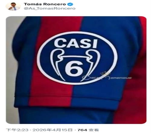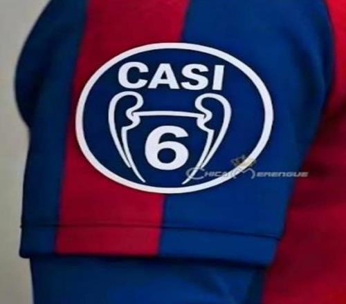 龍賽羅社媒曬圖,一件紅藍(lán)球衣的歐冠臂章上標(biāo)注數(shù)字“6”,但是上方寫著西語單詞“CASI(差點(diǎn))”。