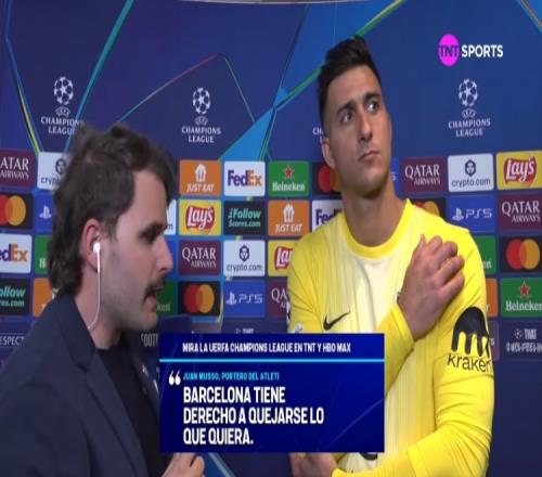 體育播報4月15日宣 歐冠1/4決賽次回合比賽,馬競主場1-2不敵巴薩,總比分3-2晉級半決賽,馬競門將穆索賽后接受了媒體的采訪。