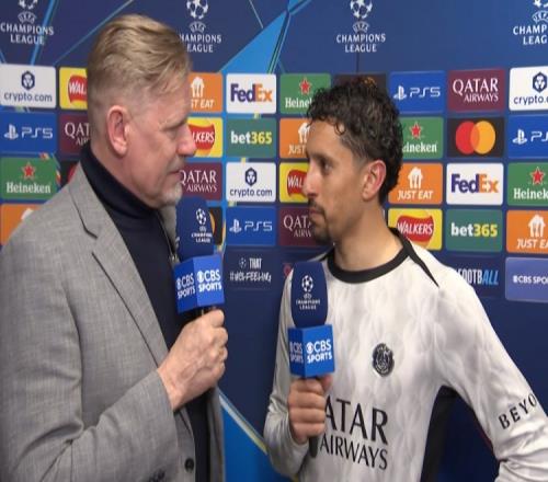 體育播報(bào)4月15日宣 歐冠1/4決賽次回合,巴黎客場(chǎng)2-0擊敗利物浦,總比分4-0晉級(jí)半決賽。賽后,馬爾基尼奧斯接受了CBS的采訪。