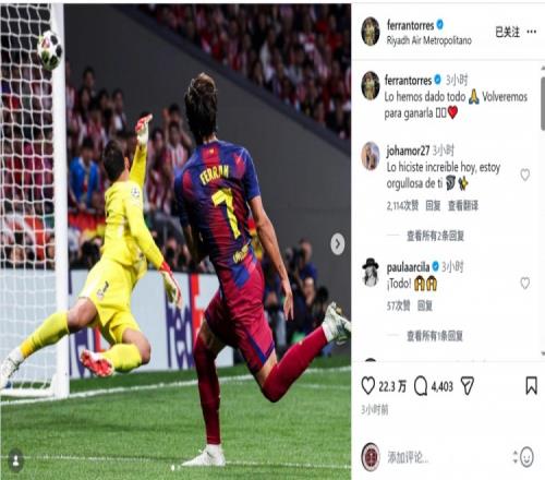 費蘭·托雷斯此役為巴薩貢獻傳射,賽后他在社交媒體上寫道:“我們已經(jīng)拼盡全力,我們會回來贏得這座獎杯。”