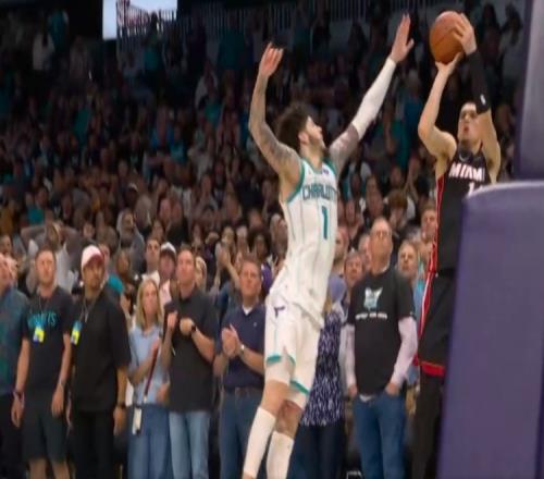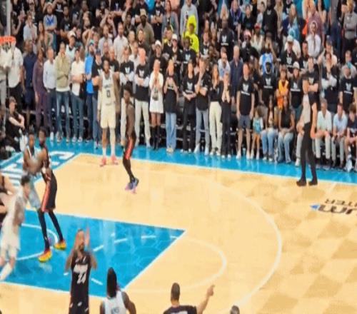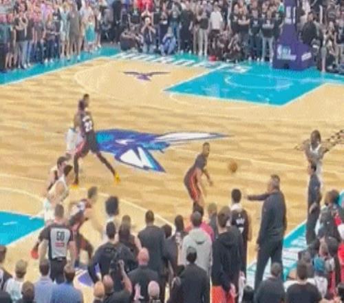 黃蜂暫?;貋砗?,三球單挑突破打進(jìn)制勝上籃,熱火快發(fā)球一路奔襲到籃下,布里奇斯和布蘭登·米勒斜刺殺出雙鬼拍門將小米切爾的絕殺上籃扇飛!黃蜂淘汰熱火晉級附加賽第二輪。