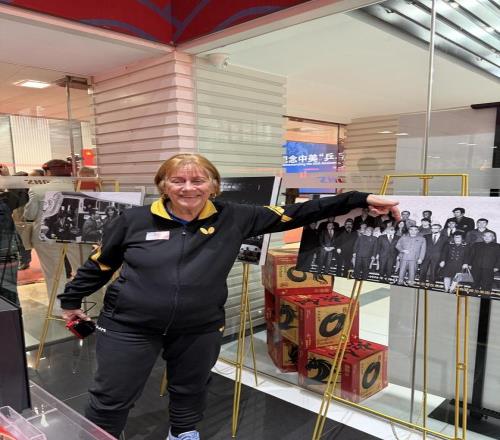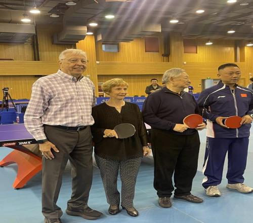 索爾特斯在參訪期間看到了當(dāng)年美國(guó)乒乓球隊(duì)的合影,并認(rèn)出了照片中當(dāng)年的自己和朱迪。