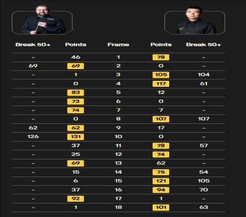 龐俊旭打出三桿破百(107、104、105)和五桿50+(61、57、54、70、63),杰克遜·佩奇打出一桿破百(126)和兩桿50+(69、62)。