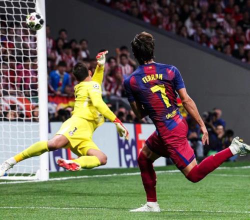 然而,到了次回合的比賽,巴薩還是選擇讓費(fèi)蘭-托雷斯首發(fā)出戰(zhàn),和上一場比賽相比,費(fèi)爾明和奧爾莫開始更多的出現(xiàn)在了邊路,這樣的戰(zhàn)術(shù)調(diào)整能讓巴薩獲得更多的中場控制力,但前場投入禁區(qū)的進(jìn)攻球員不升反降,費(fèi)蘭在馬競禁區(qū)實(shí)際上成了抗壓位。好在,弗里克的搶開局戰(zhàn)術(shù)還是讓他抓住了改寫命運(yùn)的機(jī)會(huì),比賽剛開始他便在高位壓迫回合助攻亞馬爾完成了破門,第24分鐘巴薩在左路策動(dòng)攻勢,奧爾莫的直塞準(zhǔn)確找到了前插的費(fèi)蘭,在大都會(huì)球場,費(fèi)蘭終于登上了托雷斯的號(hào),接球,轉(zhuǎn)身,殺入禁區(qū)完成破門,整個(gè)動(dòng)作一氣呵成,幫助巴薩在開場階段瞬間抹平了大比分。