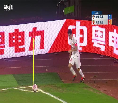 中超聯(lián)賽第7輪補賽,梅州客家VS上海海港,比賽第54分鐘,上海海港18號隊員進球,進球前其手臂疑似與球有接觸。裁判員臨場判罰進球有效,VAR未介入。