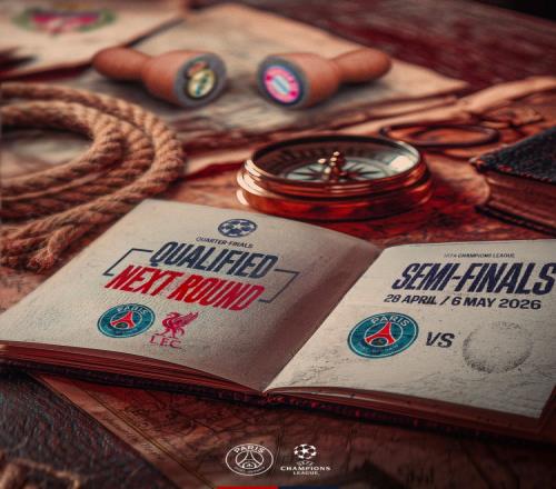 巴黎圣日耳曼官方社媒也發(fā)布了海報,慶祝球隊順利通關(guān)晉級歐冠半決賽,并靜候拜仁與皇馬之間的勝者。
