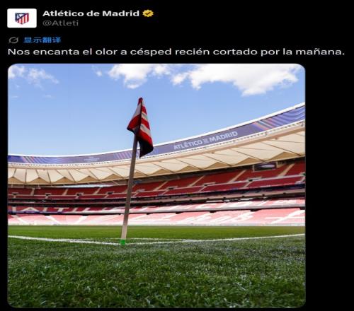 馬競(jìng)官方社媒比賽第二天更新動(dòng)態(tài),曬出球場(chǎng)草皮的照片:“我們喜歡剛修剪過的草皮清晨散發(fā)出的味道”