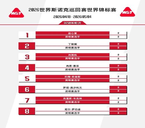 其他中國(guó)種子選手方面,肖國(guó)棟第二輪潛在對(duì)手是墨菲,吳宜澤第二輪潛在對(duì)手是塞爾比,斯佳輝第二輪潛在對(duì)手是特魯姆普。