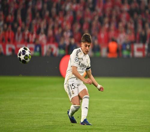 歐冠1/4決賽次回合客場(chǎng)挑戰(zhàn)拜仁慕尼黑的比賽中,居萊爾的進(jìn)球?yàn)榛始荫R德里首開記錄,從而將總比分扳為2-2。