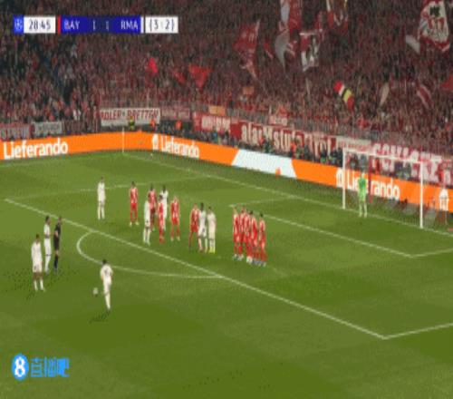 體育播報(bào)4月16日宣 歐冠1/4決賽次回合,皇馬在安聯(lián)球場(chǎng)挑戰(zhàn)拜仁。本場(chǎng)比賽上半場(chǎng),客隊(duì)小將居萊爾任意球直接破門得分。