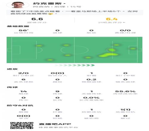 不忍下手約克雷斯面對老東家:56分鐘0射正1關(guān)鍵傳球,評分6.6
