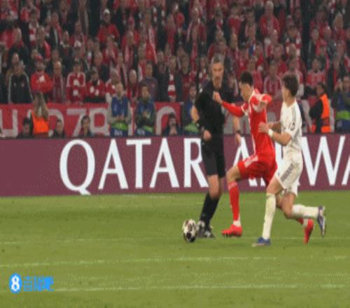 穆西亞拉中場(chǎng)嘗試快發(fā)任意球被吹停,呂迪格對(duì)裁判出言不遜染黃