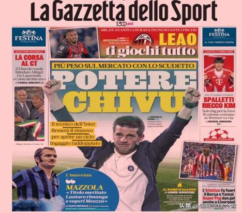 比如《米蘭體育報(bào)》將齊沃放上封面,指出:賽季結(jié)束后齊沃將與國(guó)米續(xù)約,年薪從稅后250萬(wàn)提升到400到500萬(wàn)歐元,接近翻倍。同時(shí),齊沃將在球隊(duì)建隊(duì)規(guī)劃、轉(zhuǎn)會(huì)市場(chǎng)決策中,擁有更大的話語(yǔ)權(quán)。