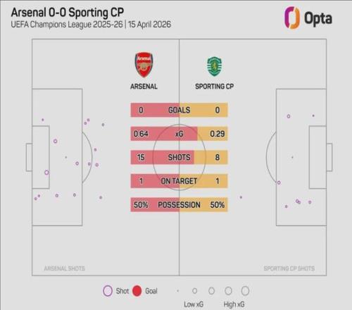 Opta統(tǒng)計(jì),本場比賽阿森納的預(yù)期進(jìn)球只有0.64,葡萄牙體育則只有0.29,兩支球隊(duì)的預(yù)期進(jìn)球數(shù)之和創(chuàng)造了本賽季歐冠單場比賽最低紀(jì)錄。