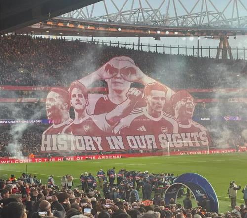 阿森納球迷賽前制作展示的巨大tifo:見證歷史。