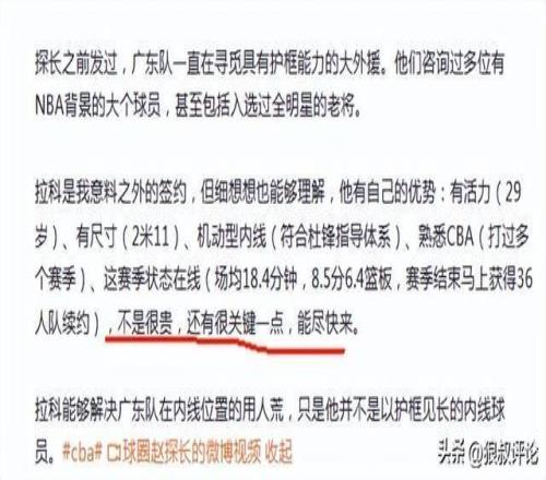 媒體人趙探長發(fā)文點評說道:廣東隊一直在尋覓具有護框能力的大外援。他們咨詢過多位有NBA背景的大個球員,甚至包括入選過全明星的老將。