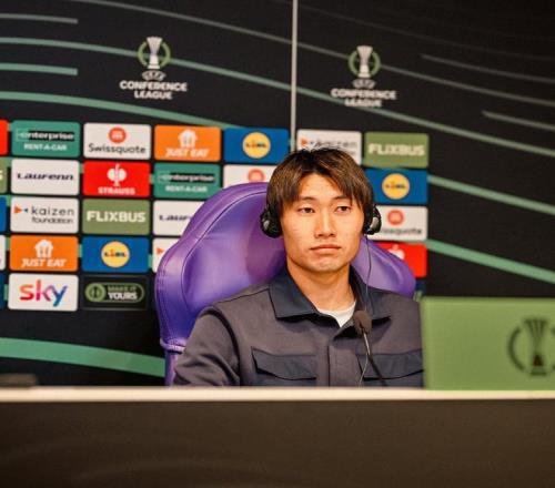 歐協(xié)聯(lián)客場對陣佛羅倫薩賽前,水晶宮中場鐮田大地出席了發(fā)布會。