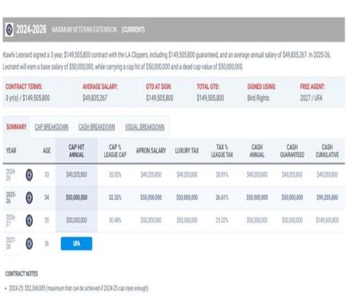 倫納德還剩26-27賽季價值5030萬的合同,這不是球員選項,但他很有可能在今夏提出交易申請,因為這支快船實際上已經(jīng)進入了重建期。(快船自2022年后首次無緣季后賽,雷霆則獲得26年一個沒有保護的樂透簽)