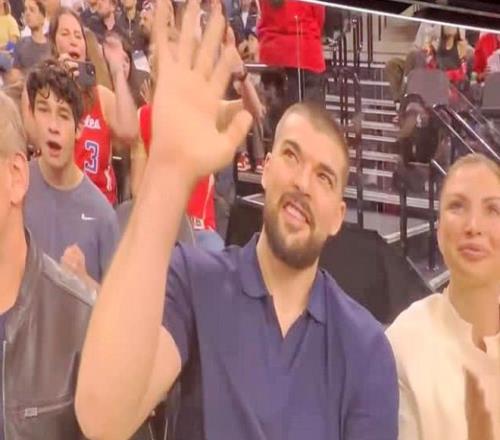 快船舊將祖巴茨在場(chǎng)邊觀戰(zhàn),獲得現(xiàn)場(chǎng)球迷的掌聲和歡呼!