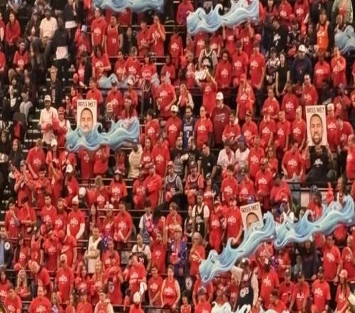 快船球迷試圖干擾勇士球員罰球,舉著克萊的頭像,上面寫著“想我了嗎?”