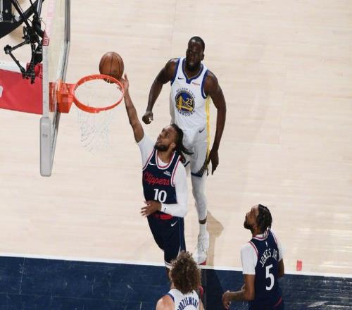 庫(kù)里和波神連追12分,中段加蘭正面突破拋投,隨后大洛繼續(xù)強(qiáng)攻,加蘭的撤步三分又將勇士打停,兩隊(duì)擱這里打回合制游戲呢,你一波完了我一波。暫?;貋?lái),桑托斯聯(lián)合霍福德追到只差4分,馬瑟琳連續(xù)單打止血?;舾5氯智驈棢o(wú)虛發(fā),大洛立刻還上!桑托斯上籃追到只差1分,大洛三分打鐵,霍福德再中三分反超!大洛罰球追平,庫(kù)里超高難度橫移三分再中!還剩50秒,快船發(fā)球出現(xiàn)失誤,格林打掉,波杰姆斯基上籃再中!此后倫納德運(yùn)球失誤,被格林搶斷,庫(kù)里罰球定勝局。最終快船主場(chǎng)121-126不敵勇士,快船出局!