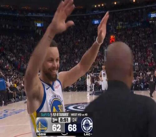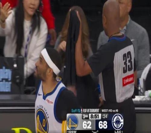 庫里之后高舉雙手笑迎替補裁判肖恩-科賓脫衣服替補出戰(zhàn)