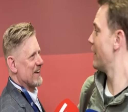 體育播報(bào)4月16日宣 歐冠1/4決賽次回合,拜仁vs皇馬,第1分鐘,諾伊爾出球直接傳給居萊爾,后者吊射空門(mén)得手,不過(guò)拜仁最終成功晉級(jí)。賽后,舒梅切爾在混合采訪區(qū)與諾伊爾開(kāi)起了玩笑。